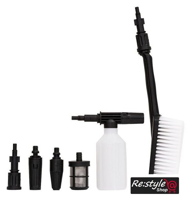 | Комплектация | • мойка• пистолет• удлинительная трубка• веерная насадка• грязевая фреза• пенная насадка• моющая щетка• быстросъемное соединение с фильтром тонкой очистки• фильтр для работы в режиме всасывания• стержень для очистки• руководство по эксплуатации• гарантийный талон |