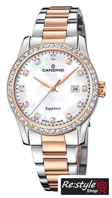 розовое золото/серебристый корпус, белый/перламутровый циферблат, розовое золото/серебристый браслет, металлический ремешок