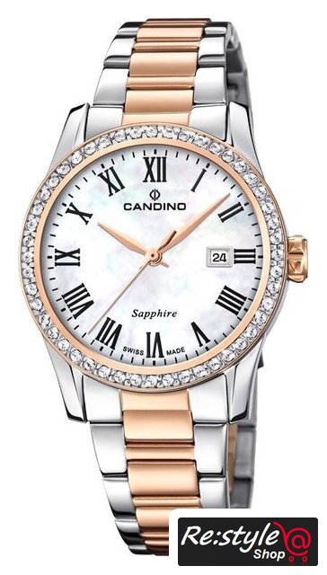розовое золото/серебристый корпус, белый/перламутровый циферблат, розовое золото/серебристый браслет, металлический ремешок