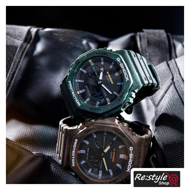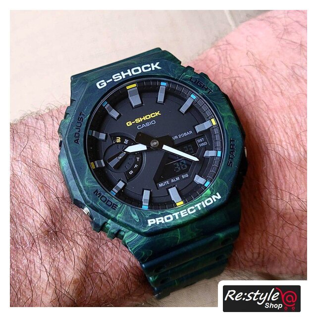 зеленый/черный корпус, черный циферблат, черный браслет, пластиковый ремешок