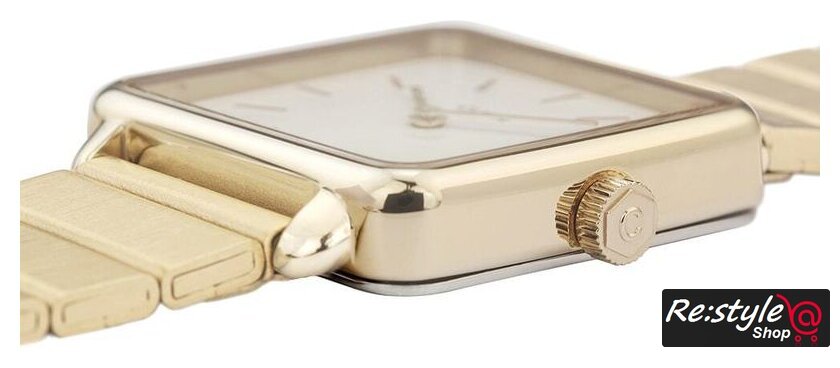 золотистый корпус, серый циферблат, золотистый браслет, миланский ремешок