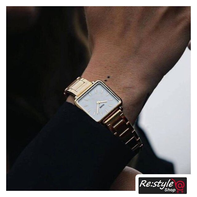 розовое золото корпус, белый/перламутровый циферблат, розовое золото браслет, металлический ремешок