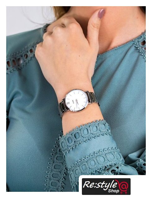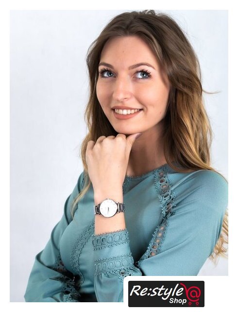 розовое золото корпус, белый циферблат, розовое золото браслет, металлический ремешок