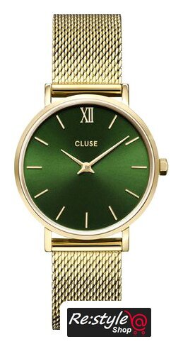 золотистый корпус, белый циферблат, золотистый браслет, миланский ремешок