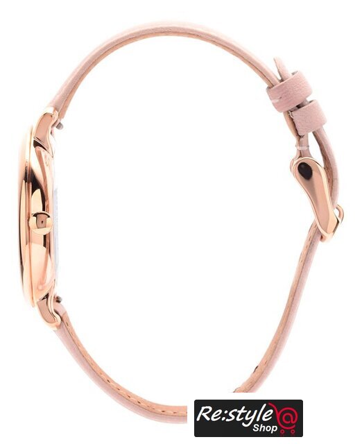золотистый/розовый корпус, синий циферблат, коричневый браслет, кожаный ремешок