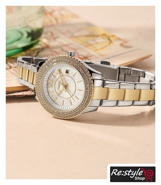 розовое золото корпус, золотистый/перламутровый циферблат, розовое золото браслет, металлический ремешок