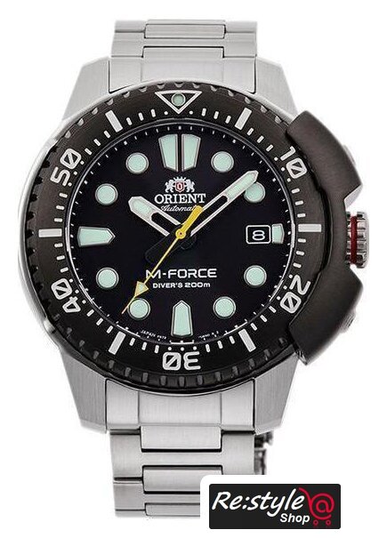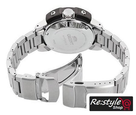 серебристый/черный корпус, оранжевый циферблат, серебристый браслет, металлический ремешок