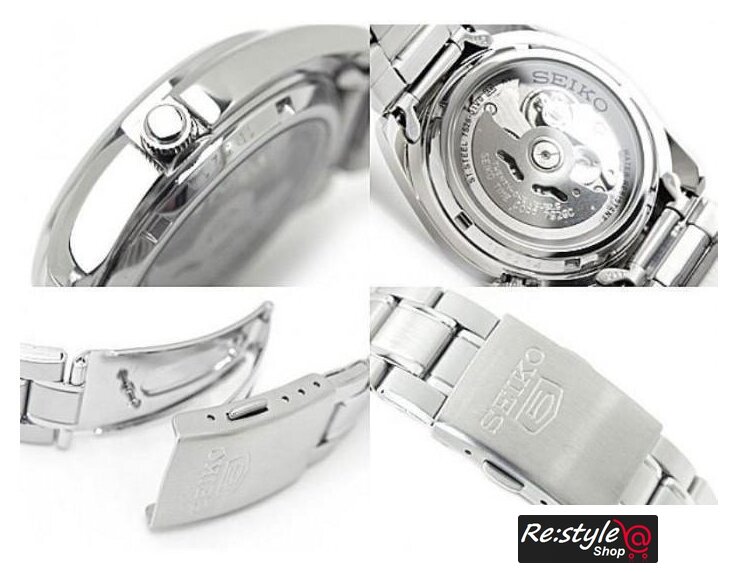 серебристый корпус, белый циферблат, золотистый/серебристый браслет, металлический ремешок