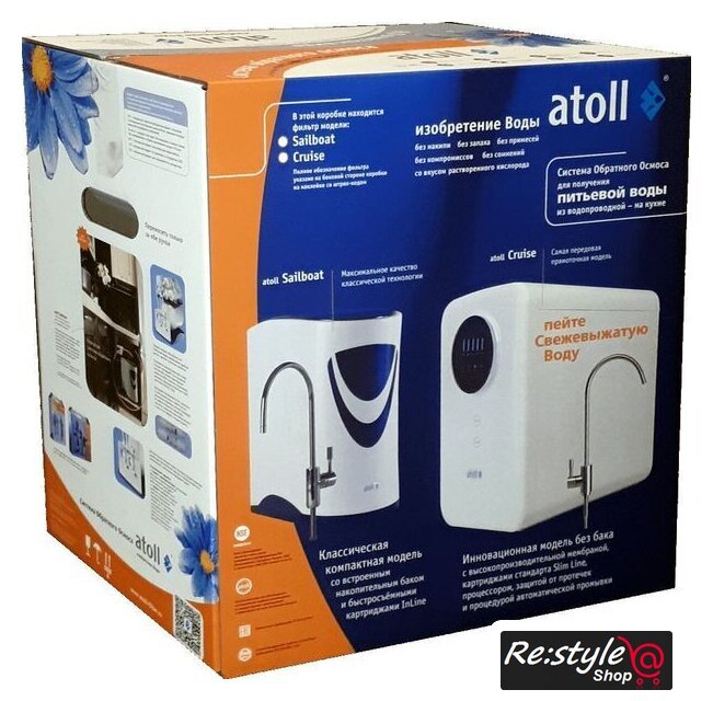 | Прочее | Основные префильтры (3 штуки). Очищают воду от примесей (песка, грязи), органики и хлора. Продлевают срок службы мембраны.Насос. Нужен в квартирах, где давление в водопроводе нестабильно.Полупроницаемая мембрана atoll TW40-1812-75. Через этот материал могут пройти только вода и кислород. Загрязнение мембраны неизбежно, поэтому перед ней установлены три префильтра. Со временем требуется замена.Бак. В нем хранится чистая вода, объем — семь литров.Картридж-постфильтр Atoll CK2586C. Помогает удалить возможный неприятный запах и привкус, если системой давно не пользовались и вода в баке застоялась.Кран. Устанавливается в столешницу или мойку. Служит для подачи чистой воды, которая не смешивается с общим потоком из водопровода. |
