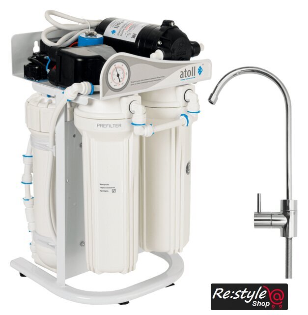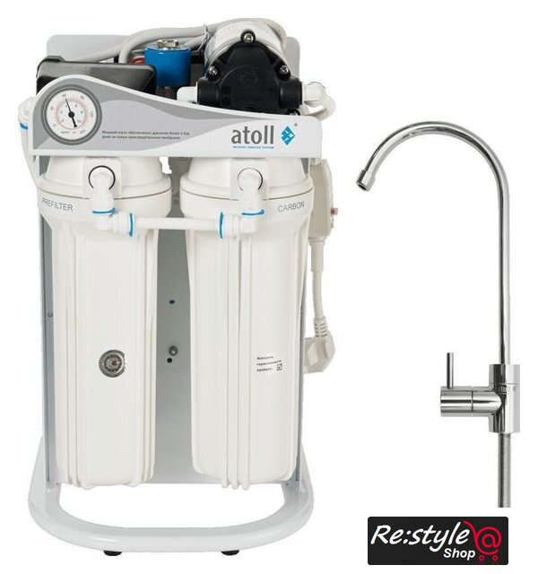| Прочее | Двух высокопроизводительных обратноосмотических мембранных элементов atoll TW30-3012-400/с 0.03.2021 на постоянной основе комплектуется мембраной atoll TW30-3012-500HR.Модуля префильтрации. Помогает сделать предочистку от механических загрязнений, а также от хлора и органики до того, как жидкость попадет на мембранный элемент. Это обеспечивает не только предварительную фильтрацию, но и позволяет увеличить срок службы самой мембраны.Картриджа WP-5 (полипропиленовая намотка). Благодаря фильтр-блоку вода очищается от включений механического типа, размер которых больше пяти микрон — речь идет о частицах песка, грунта, ржавчины, взвесей и прочих нерастворимых примесей.Картриджа Атолл GAC-10 (уголь). Обеспечивает очистку воды от хлора, что особенно важно в условиях городского водоснабжения. Хлор со временем может накапливаться в органах человека и наносить непоправимый вред организму. Поэтому употребление такой воды крайне опасно для здоровья печени, почек и других органов.Насоса повышения давления. Устройство достаточно мощное и помогает обеспечить высокую производительность основных очищающих элементов фильтра — мембран, а также всего оборудования в целом.Питьевого крана. Может быть установлен в мойку или столешницу на кухне. Необходим для подачи питьевой воды и разделения ее от бытовой. |