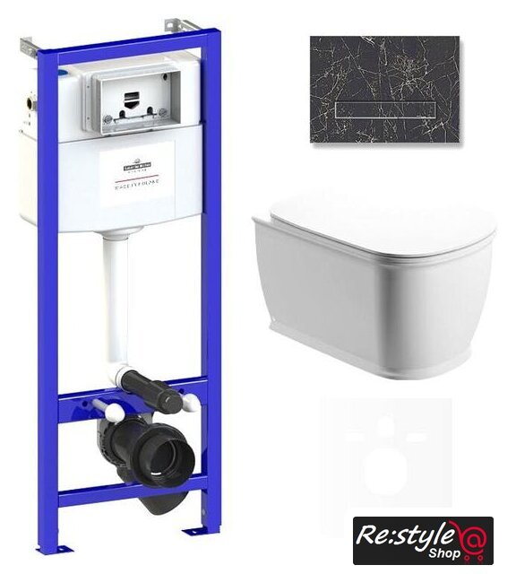 Унитаз подвесной Lavinia Boho Relfix Bell Pro Rimless 6 в 1 75110014 (greek black иск. камень)