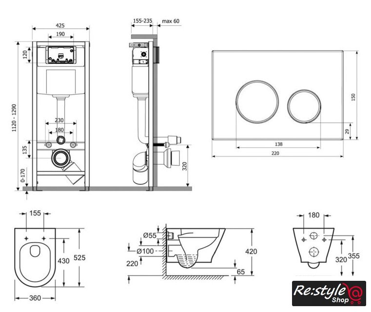 подвесной, конструкция: без бачка, двухрежимный слив