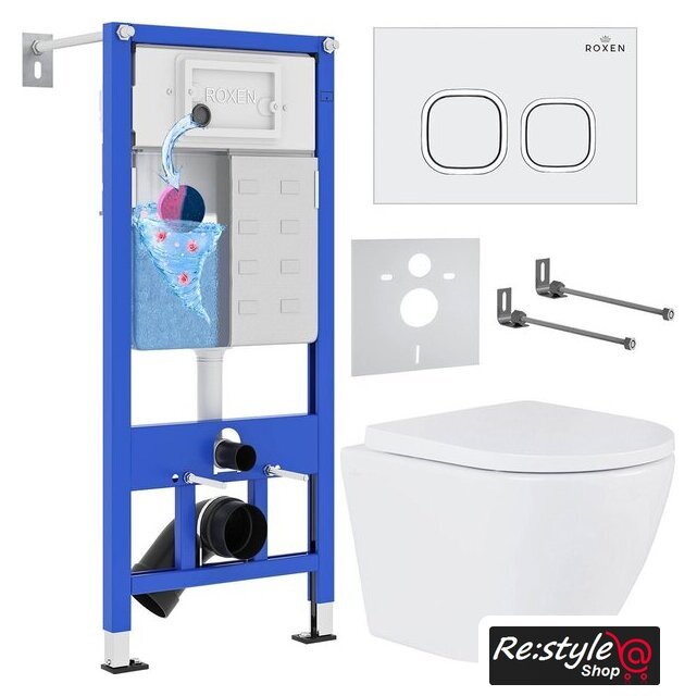 Унитазы Roxen Roxen Antares в комплекте с инсталляцией StounFix Dual Fresh 6 в 1 533876 (кнопка: белый глянец)