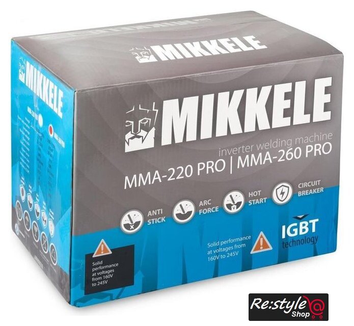 Комплект поставки | Кабель с держателем электрода 2,9 м., кабель заземления 2,6 м., сетевой кабель 2,0 м, сварочный щиток, молоток-щетка. |